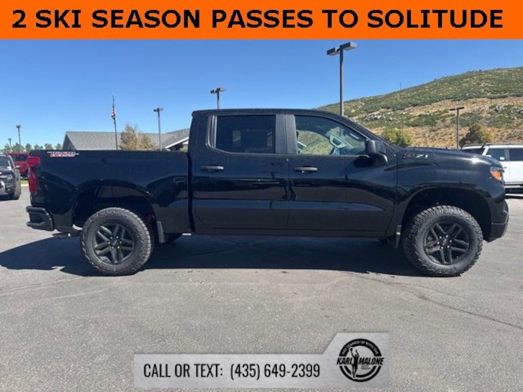 Price includes: $1000 - Bonus Cash. Exp. 08/04/2025 $1000 - Select Market Purchase Bonus Cash. Exp. 08/04/2025 $500 - Customer Cash. Exp. 08/04/2025 Black 2026 Chevrolet Silverado 1500 Custom Trail Boss 4WD 8-Speed Automatic 2.7L I4 Turbocharged DOHC 16V LEV3-SULEV30 310hp 8-Speed Automatic, 4WD, Jet Black Cloth, 10-Way Power Driver Seat w/Lumbar, 120-Volt Bed Mounted Power Outlet, 120-Volt Interior Power Outlet, 220 Amp Alternator, 3.42 Rear Axle Ratio, 3.5" Monochromatic Display Driver Info Center, 4-Wheel Disc Brakes, 40/20/40 Front Split-Bench Seat, 6 Speakers, 6-Speaker Audio System, ABS brakes, Air Conditioning, Alloy wheels, AM/FM radio: SiriusXM, Apple CarPlay/Android Auto, Auto High-beam Headlights, Auto-Locking Rear Differential, Automatic Emergency Braking, Black Name Plates (LPO), Black Tailgate CHEVROLET Lettering (LPO), Bluetooth® For Phone, Brake assist, Chevytec Spray-On Black Bedliner, Cloth Seat Trim, Color-Keyed Carpeting Floor Covering, Compass, Custom Convenience Package, Dark Essentials Package (LPO), Deep-Tinted Glass, Delay-off headlights, Driver door bin, Driver vanity mirror, Dual front impact airbags, Dual front side impact airbags, Dual Rear USB Ports (Charge Only), Electric Rear-Window Defogger, Electronic Cruise Control, Electronic Stability Control, Emergency communication system: OnStar, EZ Lift Power Lock & Release Tailgate, Following Distance Indicator, Forward Collision Alert, Front anti-roll bar, Front Center Armrest w/Storage, Front Pedestrian Braking, Front reading lights, Front Rubberized Vinyl Floor Mats, Front wheel independent suspension, Fully automatic headlights, HD Rear Vision Camera, Heated door mirrors, Heavy-Duty Air Filter, Hill Descent Control, Hitch Guidance, Illuminated entry, IntelliBeam Automatic High Beam On/Off, Lane Keep Assist w/Lane Departure Warning, LED Cargo Area Lighting, Low tire pressure warning, Manual Tilt Wheel Steering Column, Occupant sensing airbag, OnStar Services Capable, Outside temperature display, Overhead airbag, Overhead console, Panic alarm, Passenger door bin, Passenger vanity mirror, Performance Red Recovery Hooks, Power door mirrors, Power driver seat, Power Front Windows w/Driver Express Up/Down, Power Front Windows w/Passenger Express Down, Power Rear Windows w/Express Down, Power steering, Power windows, Preferred Equipment Group 2CX, Premium audio system: Chevrolet Infotainment 3, Radio data system, Radio: Chevrolet Infotainment 3 System, Rear 60/40 Folding Bench Seat (Folds Up), Rear reading lights, Rear Rubberized-Vinyl Floor Mats, Rear step bumper, Rear window defroster, Remote Keyless Entry, Remote keyless entry, Remote Vehicle Starter System, Security system, Single Outlet Exhaust, SiriusXM Trial Subscription, Speed control, Speed-sensing steering, Split folding rear seat, Standard Tailgate, Suspension Package, Tachometer, Teen Driver, Theft Deterrent System (Unauthorized Entry), Tilt steering wheel, Tire Pressure Monitoring System, Traction control, Trailering Package, Trip computer, Variably intermittent wipers, Voltmeter, Wheels: 18" x 8.5" Black Painted Aluminum, Wi-Fi Hot Spot Capable, 8-Speed Automatic, 4WD, Jet Black Cloth.